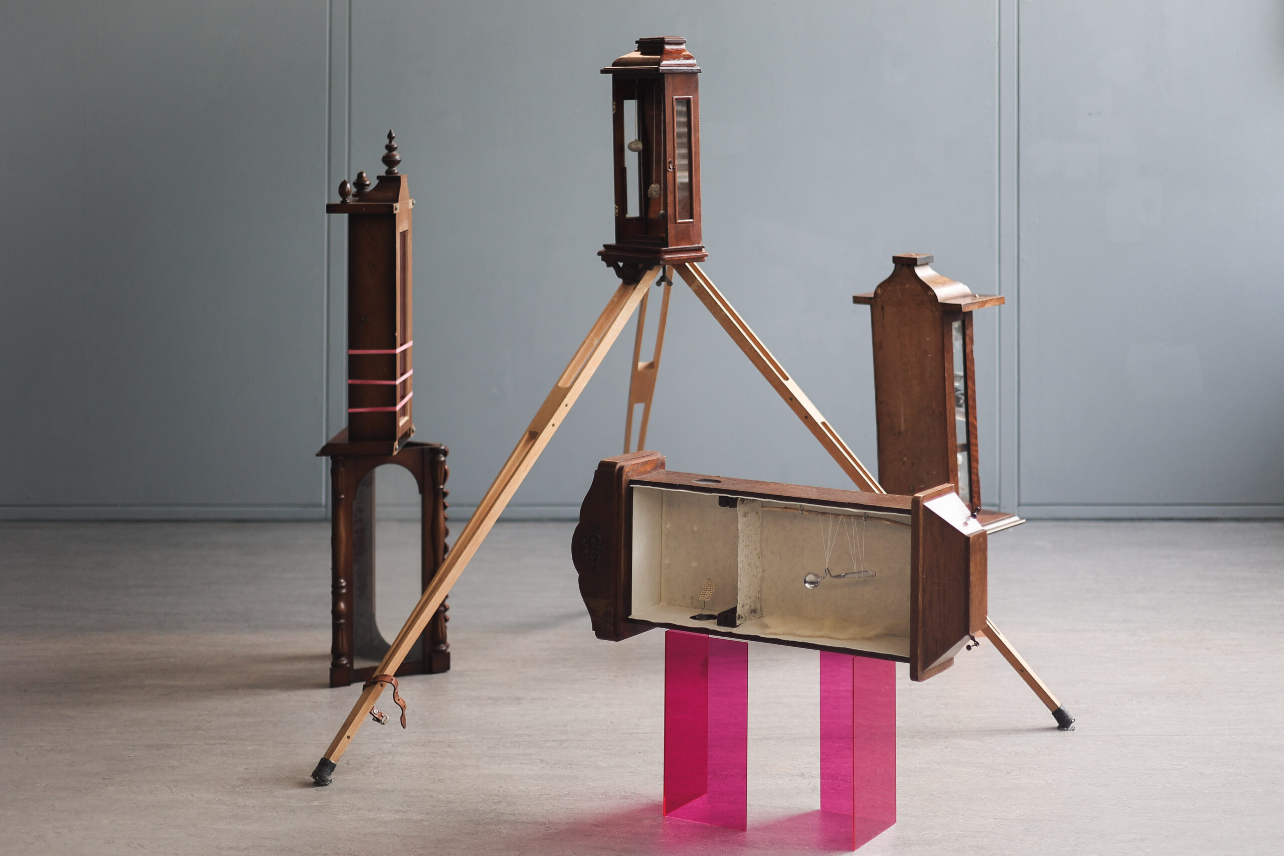 In this installation, I bring together wooden forms that echo with stories. These forms, almost like shells or vessels, are arranged in such a way that a play arises between openness and enclosure.